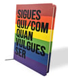 Llibreta de Lameuapau amb el disseny "Sigues qui/com/quan vulgues ser" estampat en 'l'arc de Sant Martí i de tamany A5